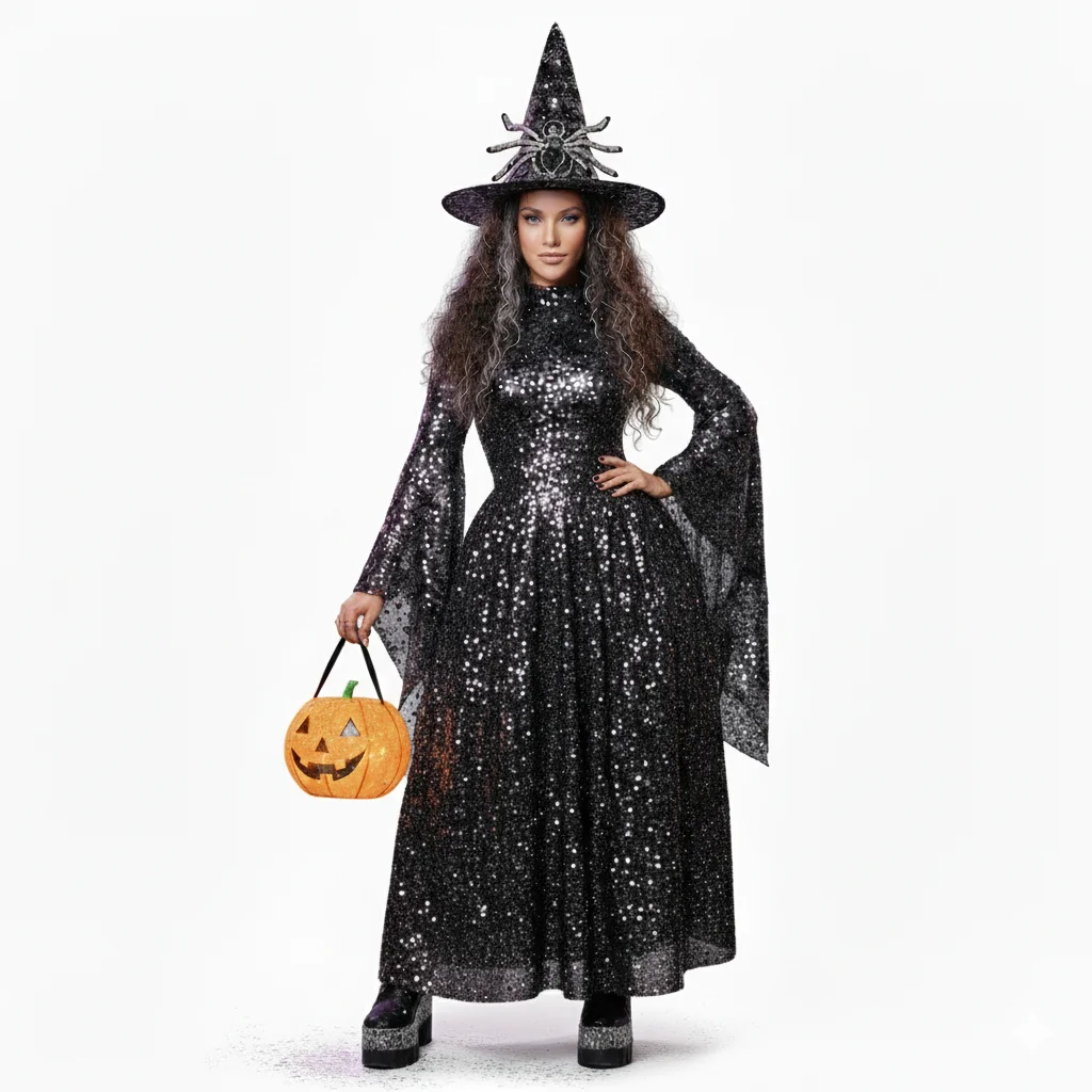 In 2025, people who want to sparkle all night long will be dressing in glitter and sequins for Halloween Style and fun are combined in these fashions which include metallic jumpsuits dresses covered in sequins that sparkle in the dark, and shimmering materials. Whether you want to be a disco skeleton, a glittering devil, or a celestial queen, the main theme of this style is glowing bright.