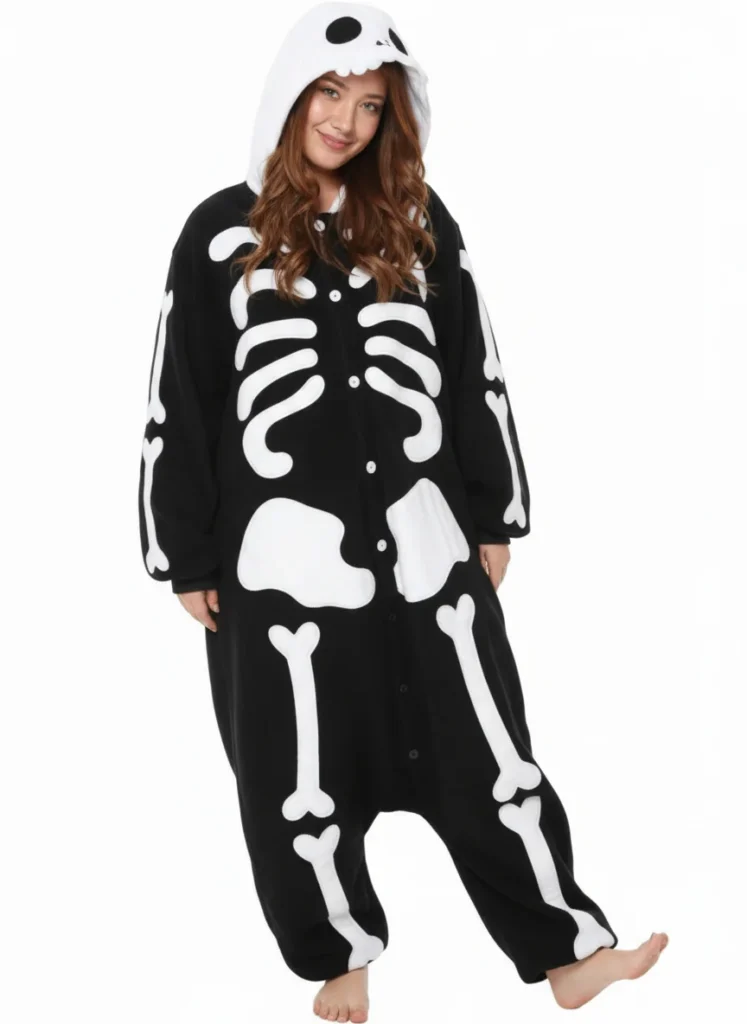 Although skeletal costumes have long been a staple of Halloween, they’re getting a stunning makeover this year. Forget about the traditional black-and-white bodysuits; the 2025 plus size skeleton style features neon highlights that illuminate under party lights, diamond decorations, and metallic bone patterns. It is both eerie and fashionable, and it highlights your curves.