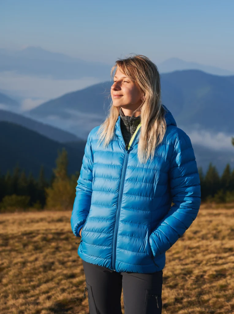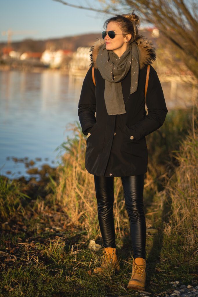 Indeed For a stylish smart casual style go for a fitting or puffy barn jacket in a dark shade to go with elegant clothing.